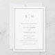 Estes elegantes, modernos, todos em um convite de casamento apresentam um simples design de texto minimalista branco e sábio verde, com um quadro clássico na fronteira. Adicione suas iniciais ou monograma para torná-las completamente suas. A parte traseira da sala de convites para seus detalhes de casamento (informações de recepção, acomodações de hotel, etc.) e rsvp (incluindo um código de QR digitalizável para que os convidados possam responder on-line através do seu site de casamento.)