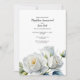 Convite de casamento elegante com rosas brancos de aquarela. O claro fundo branco adiciona um sentimento rico e eterno, enquanto os delicados florescimentos brancos trazem um toque romântico e sofisticado — perfeito para casamentos formais, cerimônias noturnas ou comemorações de temas azuis. Este design combina a beleza floral clássica com um layout moderno e limpo. Personalize facilmente com seus nomes, data e detalhes de eventos para um convite único que seus convidados adorarão.