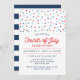 Convide seus amigos e família para a sua celebração do Dia 4 de julho com um convite festivo. O convite de festas de 4 de julho apresenta um confete vermelho branco e azul, uma tipografia fofa, e um padrão riscado branco e marinho no verso. Altere o estilo da fonte e muito mais clicando no botão Personalizar.