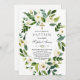 Design de cartão único e elegante, com rosas de aquarelas brancas lindíssimas, pedras, divisores florais com setas como corações, sobre fundo branco. Use a ferramenta Personalizar para adicionar suas informações, alterar fontes, cor do plano de fundo. Para itens correspondentes, visite minha coleção de celebrações Baptism/Christening.