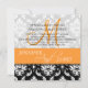 Cor damasco preto e branco elegante com convite alaranjado do casamento do monograma com enfeites alaranjados e texto branco e preto para seus fraseio do convite do casamento e nomes dos noivos. Invitations.com Wedding inteiramente customizável e WhiteWhimsicalWeddings.blogspot.com. Personalize com seus monograma, nomes e informação do convite do casamento. Também, escolha de uma variedade de pias batismais e papéis bonitos fazer seus convites do casamento FABULOSOS! Excelente para casamentos outono ou como uma cor bonita do casamento do verão. Design por Elke Clarke ©2011. Gráficos licenciados para o uso comercial