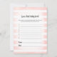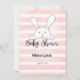 Aproveite este jogo de adivinhação do chá de fraldas da Comida do Bebê sobre o fundo das listras de aquarelas brancas, cor-de-rosa e macia. Coelho bonito, branco e coelho nas costas com modelos criados para você.
