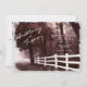 Convites brancos do casamento da caminhada da floresta da cerca com uma cena afligida da natureza das árvores e folhas com uma cerca branca. Estes convites calmos do casamento têm-lhes uma matiz roxa. O mesmo design afligido vintage é na parte de trás do convite. Estes seriam grandes para casamentos da queda e do outono. Apenas adicione seu próprio convite do casamento que exprime ao modelo.