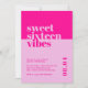 Celebrar o aniversário de 16 anos de sua filha ou amada em estilo com o nosso Convite de Aniversário Rosa 'Doce Dezesseis Vibes'! Este convite moderno e ousado é a forma perfeita de dar o tom a um doce e memorável partido de dezesseis. Projetado com matizes cor-de-rosa vibrantes e fontes contemporâneas atraentes, este convite exumenta a energia e o entusiasmo juvenis, fazer que seja a escolha ideal para qualquer doce 16 comemorações.