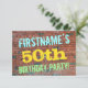 Este design de convite de aniversário divertido apresenta uma mensagem como "A 50ª FESTA DE ANIVERSÁRIO do FIRSTNAME!", onde o nome pode ser personalizado, na frente. O fundo apresenta uma representação de uma parede de tijolos constituída por alguns tijolos de cor castanha avermelhada. O texto de mensagem personalizável na frente apresenta cores como azul, amarelo e verde, e tem uma aparência inspirada pelo grafite pintado. A parte traseira apresenta uma mensagem personalizável que pode incluir detalhes relevantes sobre a festa de aniversário. Convites de festas de aniversários como esta podem ser uma maneira divertida de convidar a família e os amigos para uma festa de aniversário que está sendo realizada para alguém que comemora seus cinquenta anos. [~Z0000287]
