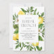 Convide convidados para o seu evento com este convite para brunch personalizável. Apresenta uma estrutura aquarela de limões e flores de limão com a tipografia moderna. Personalize adicionando seus detalhes. Este convite para o almoço de noiva de limão é perfeito para chás de panela de verão.