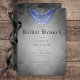 Assuma o misterioso fascínio do seu dia com esta design escura e mínima. Este simples e elegante convite para brunch chá de design de casamento, apresenta um fundo de uma misteriosa lavagem a aquarela preta, com uma simples mariposa azul no topo, representando o mistério da noite e a transformação. O texto aparece sobre uma cobertura oval branca macia, dando ao convite uma aparência misteriosa e bela. As carregares traseiras sobre o simples fundo de lavagem a aquarela preta. Criado pela imprensa simplesmente de farmácia.