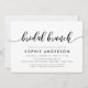 Na moda Bridal Brunch Invitation com as palavras "Bridal Brunch" em um script cursivo relaxado a preto contra fundo branco. A placa tem um lado preto com linhas brancas sobrepostas. Personalize-o substituindo o texto do marcador de posição. Para obter mais opções, como alterar a fonte e seu tamanho/cor ou o espaçamento entre letras, clique no botão "Personalizar". *Observe que a Marca d'água do Zazzle que aparece na visualização de zoom NÃO aparecerá no produto impresso final. © Rosewood e Citrus