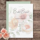 Este design apresenta um simples, mas elegante pêssego opaco e um arranjo floral de centro verde de sábado. O fundo é um belo verde macio. Criado pela imprensa simplesmente de farmácia.