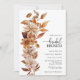 Convite para Bridal Bridal. Este elegante e rústico convite para brunch bridal apresenta cor d'água queimada, laranja e folhas de terracota pintadas manualmente, creme e dahlias beige, e belas rosas de cor ferrugem perfeitas para um casamento no outono ou no outono! A parte de trás do convite tem um simples fundo branco com um buquê de coordenação.