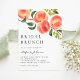 Convide convidados para o seu evento com este convite para brunch personalizável. Apresenta pêssegos aquosos. Personalize adicionando seus detalhes. Este convite para o almoço de noiva de pêssego é perfeito para chás de panela de verão. Os textos são perfeitamente editáveis para todos os efeitos.