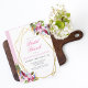 Este bonito convite para brunch é tão colorido e festivo. A design apresenta flores tropicais brilhantes, cor-de-rosa, arrojadas e azuis, com palmeiras verdes. A parte de trás do cartão tem uma rosa claro de fundo com buquês de flores tropicais. Tão doce e elegante para o seu evento.