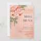 Este design de convite para apresentação de chá de panela apresenta um grande florescimento de canto de pêssego e flores de coral felicitadas com verde. O design é exibido em um fundo de safra quebrado em pêssego. Criado pela imprensa simplesmente de farmácia.