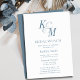 Cartão de Convite para Bridal Brunch de Monograma Clássico Elegante Azul Dusty. Celebre o seu dia especial com esta elegante e bela carta de convite para casamento para embelezar a sua ocasião especial. Todos os textos estão pré-organizados para que você personalize fácil e rapidamente com seus próprios detalhes.