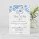 Bridal Tea Part Invitation suite com flores elegantes e paeriosas que foram pintadas manualmente em acrílicas na canvas de uma vintage em inglês, azul e asiático branco inspirado em design floral. Tex de letra caligráfica belamente manchado com letras, com pinceladas e todo o texto em um marinho azul mudo (mensagem nós, nós faremos qualquer texto de título que você precisar nesta fonte). Copyright, Audrey Jeanne Roberts.