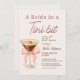 Bride in a tini bit bridal shower invitation featuring a playful martini cocktail theme with an integrated QR code. Designed so guests can easily scan to view event details, RSVP, or registry information. Ideal for cocktail themed bridal showers, bachelorette style celebrations, and modern pre wedding parties. Editable text and QR destination with a clean, print-ready layout.