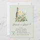 Brunch com convite da Noiva com uma garrafa de espumante, óculos de champanhe e buquês florais de rosas de pêssego. Estes convites de chá de panela de champanhe de aquarela apresentam uma caligrafia elegante e um fundo verde de sábio claro (editável).Bonitos convites de chá de casamento para um brunch ou brunch, brunch e chá de panela borbulhante, por exemplo. Se necessitar de elementos de coordenação, por favor, envie-me uma mensagem e terei todo o prazer em criar os designs adicionais.