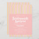 Budget Bridesmaids Luncheon Os Convites de chá de panela Dourados Rosa Modernos apresentam faixas bonito rosa, branca, douradas e laranja em um fundo cor-de-rosa com as informações de Convite para a Coluna Bridesmaid. Personalize editando o texto nas caixas de texto. Projetado para você pelo Evco Studio www.zazzle.com/store/evcostudio