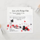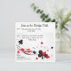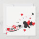 Clube de pontes giras ou convites de festas de pôquer com Clubs, Hearts, Spades, Diamantes espalhados em uma forma quadrada divertida em design vermelho, preto e branco. Fácil de personalizar.