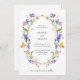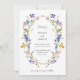 Este convite simples e feito de feitiço apresenta um cheio floral de flores e folhas botânicas coloridas - em azul, roxo, rosa, laranja, verde e branco. Um olhar brilhante e rústico para seu casamento de primavera ou verão.