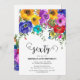 Convites florais brilhantes e ousados de 60 anos que podem ser personalizados para qualquer idade. Design apresenta letras de escrita de caligrafia, flores pintadas manualmente de aquarela com folhagem verde e um clássico modelo de aniversário elegante que é fácil de personalizar.