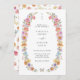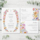Bright Floral Wedding Convite. Comece a comemorar com uma ousada declaração de cor e charme através deste maravilhoso convite para casamento, perfeito para um primavera, verão ou evento de outono caprichoso. O seu monograma é enquadrado por uma elegante camada de aquarela, com cor rosa pincelada, fúcsia brilhante, laranja e ouro amarela, rosas lavandas, delfinium azul delicado, margaridas brancas e amarelas, e uma mistura deliciosa de flores silvestres. Uma borboleta graciosa adiciona um toque de magia, enquanto o padrão de coordenação no verso completa a design com harmonia visual. Comece sua jornada com uma peça tão vibrante e alegre quanto seu amor - faça dela hoje e deixe sua história de casamento se desenrolar maravilhosamente.