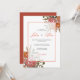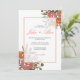 Uma parte da coleção Bright Peach e Orange Floral, que inclui peões e rosas de cor laranja-d'água com verde botânico e eucalipto. Um convite de casamento elegante e clássico em laranja, tangerina, tema floral de pêssego.