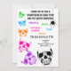 Tocados crânios verdes, cor-de-rosa, pretos, laranja, azuis e roxos brilhantes nestes convites para festas de Halloween. Personalize qualquer texto. Envie-me uma mensagem com perguntas ou para uma ordem personalizada.