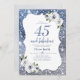 Faux brilho azul-prateado brilhante com script "45 e fabuloso" com azul empoeirado e branco floral, elegante e na moda, excelente 45º convites de festas de aniversários.