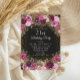Cor-de-água elegante e romântica, cor-de-rosa, burgundy, e cor-de-água púrpura, floral e folhagem em convite de festas aniversário de 21 anos preto personalizado com brilho dourado. Personalizado com o nome do convidado de honra.