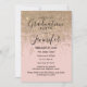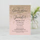 Rapariga, chic e elegante faux imprimiram brilho dourado brilhante em convites cor-de-rosa pincelado e Festa de formatura. Este design clássico e sofisticado é perfeito para o formando clássico, na moda e moderno. Personalize com sua própria mensagem na frente e um monograma personalizado inicial no verso. Todas as impressão de fotos.