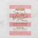 Um guarda-chuva e uma caligrafia de brilho elegantes do ouro com um fundo branco e cor-de-rosa brilhante da listra. Seus convidados e mamãe-à-estão amarão este convite moderno bonito do chá do bebé. Verifique por favor minha loja para ver se há mais versões. Fácil personalizar com seu próprio texto. NOTE POR FAVOR: Todos os produtos em Zazzle têm imagens impressas do plano - sequins nao reais ou brilham.