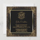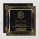 A classe elegante do ouro da festa de formatura 2017 convida com ouro que chique do falso do efeito dos acentos do brilho do ouro os rolos metálicos do olhar decoram os cantos contra um fundo do preto do carvão vegetal com quadro do quadrado do olhar do metal do ouro do falso com olhar da beira do brilho do ouro. Um círculo decorativo do efeito metálico da cor do ouro está na parte superior. Lê a classe em letras curvadas do ouro acima do círculo com um interior de harmonização do número 17 da cor do ouro ele. O formando é imprimido no texto curvado abaixo. O nome do formando no roteiro e nos outros detalhes da festa de formatura abaixo na rotulação hued do ouro, incluindo a informação de RSVP. O ano da classe pode ser personalizado, assim como cores e estilos de texto. A parte traseira tem rolos de harmonização do ouro nos cantos contra um fundo preto contínuo. Aperfeiçoe para cores da escola do preto e do ouro. Elegante bastante para formandos. Trabalhos para o grande partido temático de Gatsby também.