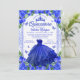 Convites Brilho Azul Real Floral Brilho Quinceanera