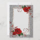 Este convite criado no estoque de qualidade tem o impressão do brilho da prata do falso na parte dianteira com beira do cristal de rocha-olhar do falso e as rosas vermelhas com enfeite dos rolos do vermelho imprimem. A abundância do espaço para você ao costume adiciona seu texto. A parte traseira tem o fundo do brilho da prata do falso com o mesmo grande impressão do rolo das rosas vermelhas na parte superior com sala adicionar sua informação personalizada. Personalize ou compre como mostrado para um toque escrito à mão.