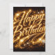 "Transforme os desejos de aniversário em luxo! ‘Feliz Aniversário’ brilha em letras de folha dourada 3D, adornado com centelhas de diamantes deslumbrantes para uma celebração glamorosa e sofisticada."