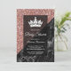 Surpreenda seus convidados com este convite de chá de bebê elegante em rosa dourado, apresentando uma sobreposição de moldura transparente única em um fundo de brilho e mármore lindo. Basta adicionar os detalhes do seu evento neste modelo fácil de usar para torná-lo um convite único.