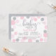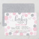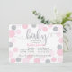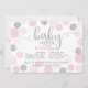 Os pontos de prata e o rosa do brilho-olhar dispersaram o design de cartão moderno do convite do chá de fraldas das bolinhas.
