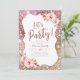 Fundo brilhante rosa de brilho fino e cor-de-rosa pincelado com script de "festa de vamos" no centro, elegante e na moda, convites para excelentes, festas de férias, festa de noivado ou outras ocasiões especiais.