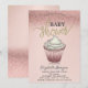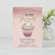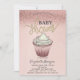 Convite de chá de bebê fofo apresenta brilho rosa dourado bokeh com um cupcake de chá de bebê. Estes convites de chá de bebê são facilmente personalizados para o seu evento, simplesmente adicionando seus detalhes.