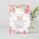 Convite do aniversário da surpresa floral 16o para mulheres. Flor floral botânica da aguarela. Brilho Dourado. Flores florais das peônias cor-de-rosa. Senhora Aniversário da menina dos miúdos. Para uma personalização mais adicional, clique por favor "personalizam-no" botão e usam-nos nossa ferramenta de design para alterar este modelo.