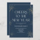 Este é um Convite de Festa de Ano Novo com Brilhos Azul Marinho e Dourado Elegante!