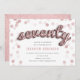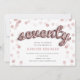 O balão Dourado cor-de-rosa rotula o modelo do convite do aniversário do 70 de "setenta" confetes do brilho.