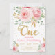 Dourada brilho, cor-de-rosa pincelado, primeiro convite de aniversário floral para menina, personalizada, Rosas Blush ©