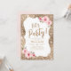 Convites brilho dourado do vamos e floral rosa