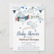 Chamadas de chá de bebê com avião, nuvens e estrelas. Esses e convites para chuveiros de bebês são facilmente personalizados para seu evento simplesmente adicionando seus detalhes de evento.