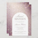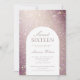 um convite de aniversário moderno entre dezesseis e dezesseis, com fundo brilhante de ouro rosa e todo o layout de texto no fazer de arco é um convite de aniversário muito moderno.