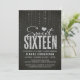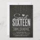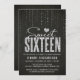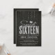 Negra & Silver Glitter 16 Convite. Esta adorável design Doce 16 de The Spotted Olive™ apresenta um fundo preto com uma imagem de gemas cintilantes a partir do topo e as palavras "Doce Dezesseis" estilosas com a palavra "Dezesseis" recheadas de uma imagem de brilho prateado. NOTA: ESTE DESIGN APENAS APRESENTA UMA IMAGEM IMPRESSA DO GLITTER; NÃO HÁ NENHUM GLITTER FÍSICO USADO OU INCLUÍDO; NÃO HÁ EMBELÉDIOS. ESTE É UM DESIGN DE IMPRESSÃO PLANA. Copyright 2013-Presente | Azeite em vaso™ | Todos os direitos reservados