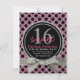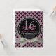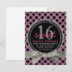 Convide amigos e família para a doce festa de aniversário de uma garota especial com este convite de pokadot preto e rosa! O estilo de brilho fino rosa e o fundo preto sólido acentuado com uma fita e um arco no estilo de brilho prateado bonito, e círculo com anel duplo com cinzas e texto cor-de-rosa correspondente anunciando um doce 16. Quatro áreas de texto personalizáveis para suas informações de participante. Vários outros produtos de coordenação disponíveis na loja para uma celebração de aniversário temática. Disponível também em outras cores e padrões.