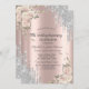 Um design moderno, chique e glamoroso com gotas de glitter prateado e flores em um fundo rose gold.